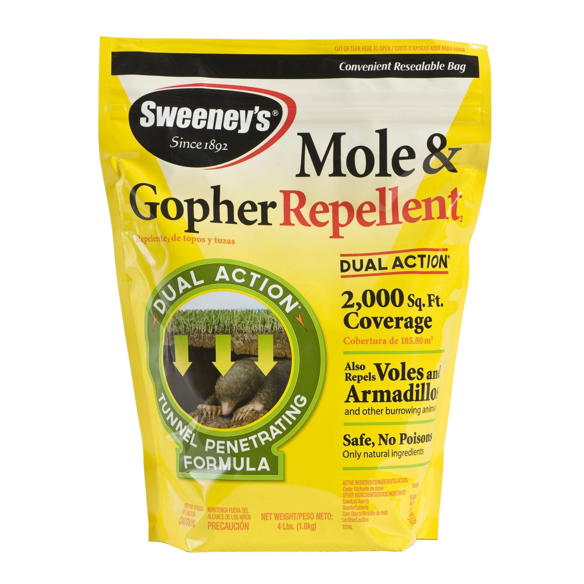 A convenient easy-to-use Shaker Bag allows you to treat your lawn without handling the product. Commercial repellents use concentrated pellets or liquids composed of castor oil and other irritating ingredients to drive moles away. Castor oil will not kill gophers it will repel them.
