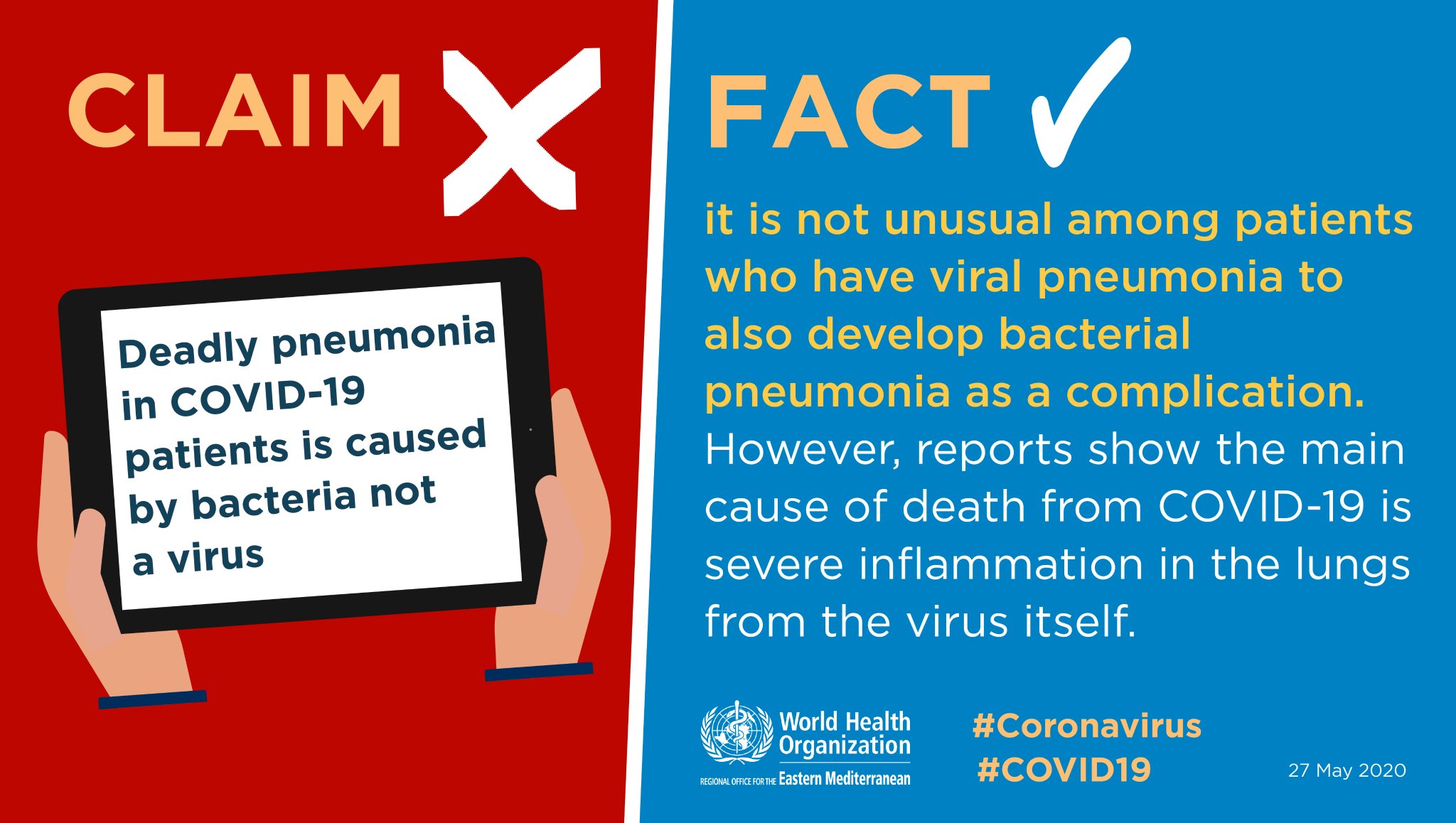 Who Emro On Twitter False Deadly Pneumonia In Covid19 Patients Is Caused By Bacteria Not A Virus Correct It S Not Unusual Among Patients Who Have Viral Pneumonia To Also Develop